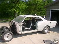 This is a factory 4 speed car. The car does not have a motor or transmission. It is a factory order Vinyl top car over a Silver Frost exterior and a Black interior. The body is now in primer. The chassis is completely redone with all new components. Rear quarters are rust free and were taken down to bare metal and shot with epoxy prime. Car has a 3.25:1 limited slip 5 point adjustable rear. Notable option is the AM/FM radio. |