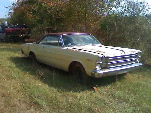 This one comes to us from our new friend Joe Motroni. It was spotted on the way to a car show in Pacifica, CA, near San Francisco. Originally Ivy Green, it now appears to be Silver Frost.The Galaxie is owned by truck driver who's had it in his possession for 15 years. He said the engine was rebuilt when he first got the car. When the engine was started it smoke a little so it looks like it might need some more engine work plus, as the pictures show, quite a bit of other restoration. He also said he has a lot of the trim work and emblems as well as other spare parts for the car.