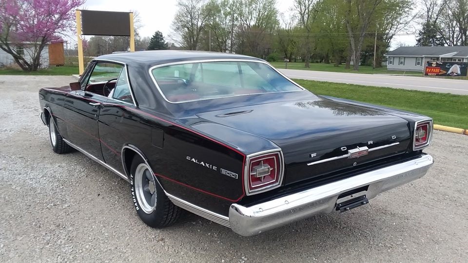 This car was purchased, along with a rare Country Sedan with a Q code 428. Brandy's dad got both cars for only 3 grand! The 7-Litre originally Wimbledon white, now sports a black paint job, but has the original black interior. No known options above those that came stock on the 7-Litre package. Both cars run and dad drives the galaxie often.