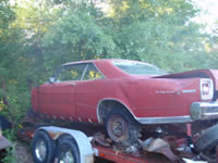 This one comes to us from Ohio. Someone spotted it and was nice enough to forward it to us. A complete car, but needing a full restoration. It was found in a Salvage yard....with the keys still in it!!! |