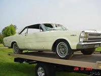 Dennis Knapp Born and raised in California as Sauterne Gold with a Light Ivy Gold interior.  Some of the non-stock items present are the Galaxie hood emblem and dog dish hub caps.  Up for auction on ebay but reserve not met, 04-08-05.