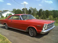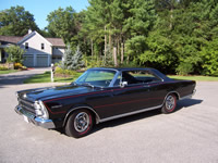 My car sold new in North Carolina in March of 1966 and spent most of its life along the N.C./Tenn. border. I found it in Tulsa and bought it from the second owner. Frame off restoration done in 1999 by Michael Bowser. I freshened it up in ’07 & ’08. Original 428 and 4-speed and original color scheme, Raven Black with Black interior. Only factory option beyond the 7-Litre package is the AM/FM radio. Previous owner tells me it had a factory 8-Track but that he threw it away! The 6000RPM console tachometer featured was added later, and is actually a Mercury S-55 piece (made by Stewart Warner) from the same year. Engine is .040 over, with forged pistons and rods, roller cam, Ford Police aluminum intake, and cast iron R code headers. |
