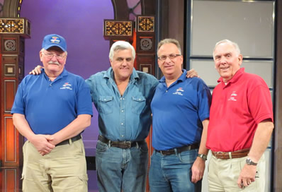 | was the main event. The guys were scheduled to go see the Tonight show as Jay's guests and then meet up with him after to get a tour of the garage. They headed up to NBC Studios in Burbank and checked in at Guest Relations, where their name was on the list (step one complete). They were then ushered in with the other guests past the general admission seats. They got their seats but realized there was no way to contact Jay to confirm the after show arrangements. Vince said he would speak to the usher after the show. The show was great. The guest hosts were Terry Bradshaw, Heidi Klum and Darius Rucker. After the show, they started escorting people out of the studio. When the usher got to their row, Russ said, "You'd better talk to THIS guy!", and pointed to Vince. Vince stated that they were supposed to meet up |