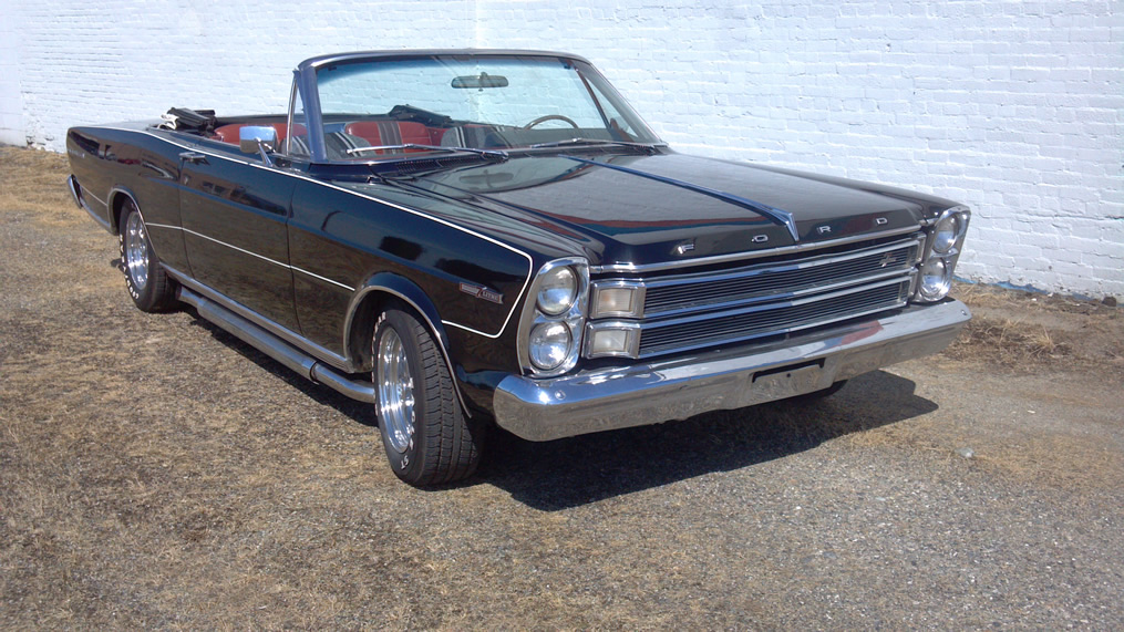 C6 automatic transmission. power steering. power disc brakes. hooker headers. 4-barrel carburetor. chromed valve covers. air cleaner and master cylinder cover. The engine and the underside and chassis are very clean. well painted and detailed. Also has custom dual exhaust. Added factory options are a brake light on the dashboard and AM/FM Radio. The black vinyl power top and vinyl top boot with glass rear window are in very good condition. The interior is black vinyl with front bucket seats. It has a power driver's seat and also has power windows. The Galaxie has Magnum 500 chromed style wheels and hubcaps with Hercules P235/60R15 front and P255/60R15 rear black-wall tires. The trunk area is immaculate with a new spare. This is a one-family owned vehicle in very good condition. The current owner received it from his Aunt and Uncle. It has always been well loved and well maintained. |