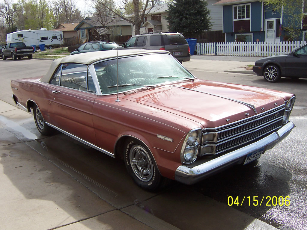 Scott was looking for a 1966 XL convertible, and placed an ad. Here's his story. "A guy calls me up and says, I have a 500 convertible, but it's a 7 Litre. A little banged up, needs a top, some interior work, but I need to get rid of it, the wife is pregnant. And oh, by the way, it is a 4 speed, hope you don't mind. This guy is in Wisconsin so I made it up that way to look at it, and indeed, a lot of work was needed, but was drivable. He wanted a bit much for it, so I tell him I need to think about it, and ended up calling him when we got back to Colorado a month later. We neded up agreeing on a price. The car has A/C, and a power drivers seat. The original motor is long gone. The paint and pin stripe is original, except where there is previous damage. But it is about 60% original paint. Emberglo, with Parchment interior. I have put new carpet in it, replaced the rear floor pans, rebuilt transmission, new tires, a new exhaust system with Flowmasters. |